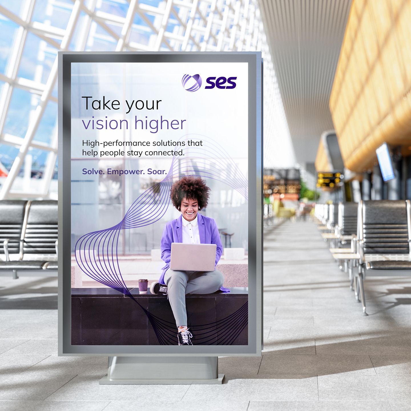 With a clear link between design and strategy, SES’s visual identity captures a future-forward company ready to shape what’s next in space-enabled communications.